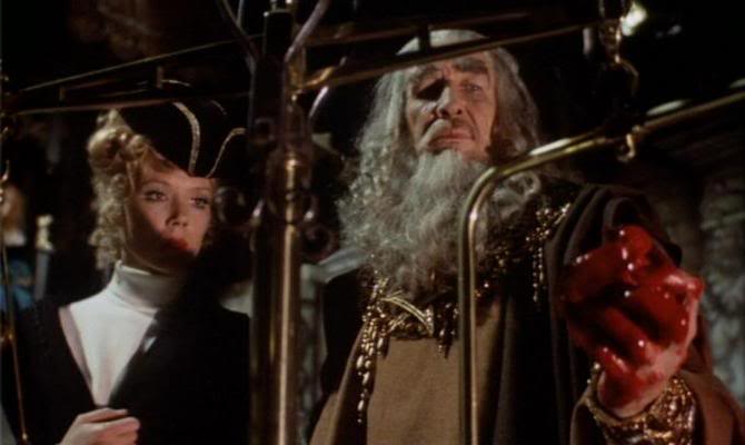 In Theatre of Blood, Vincent Price is actor Edward Lionheart, here playing Shylock in a murderous Merchant of Venice. With Declan Mulholland, Harry Andrews and Diana Rigg.